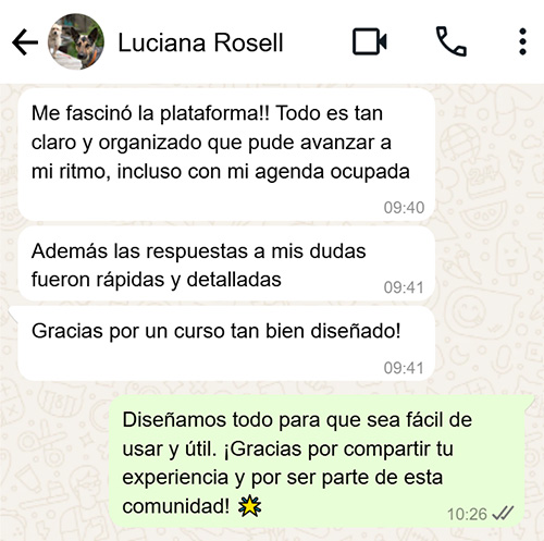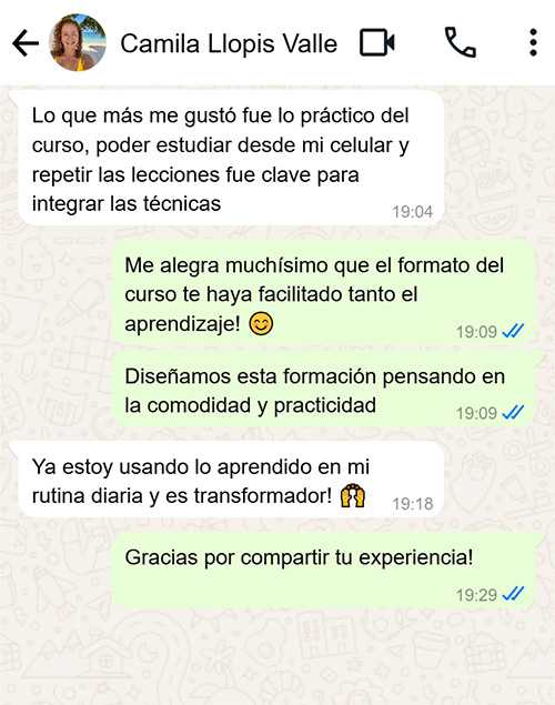 Apenas realices el pago recibirás por correo el acceso y podrás comenzar de inmediato con el curso. Ya tienes todo el contenido grabado, para que puedas verlo a tu ritmo, sin presiones. Podrás hacerme todas las consultas que desees.