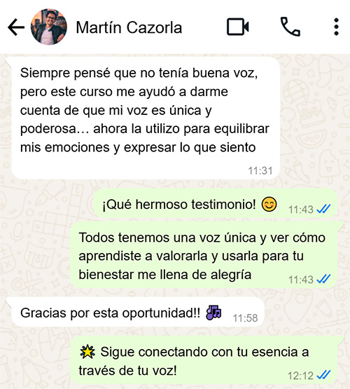Este producto no sustituye el parecer de un médico profesional. Consulta siempre a un médico para tratar los asuntos relacionados con tu salud. Los resultados pueden variar de persona a persona. Todos los testimonios presentados anteriormente son reales y fueron escritos por usuarios reales, clientes o seguidores de "Certificación en Voz y Cuerpo Sonoro Consciente". Por favor tome en cuenta que estos testimonios no representan necesariamente los resultados típicos del programa. Para proteger la identidad de los usuarios, las Imágenes son de Stock y no representan personas reales, son Ilustrativas.