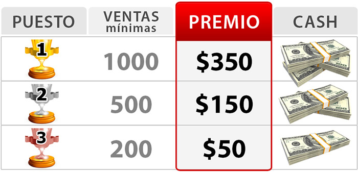 Alcanzando las ventas necesarias en un plazo de 45 días, recibirás el increíble premio adicional en efectivo (además de tus comisiones como afiliado!).